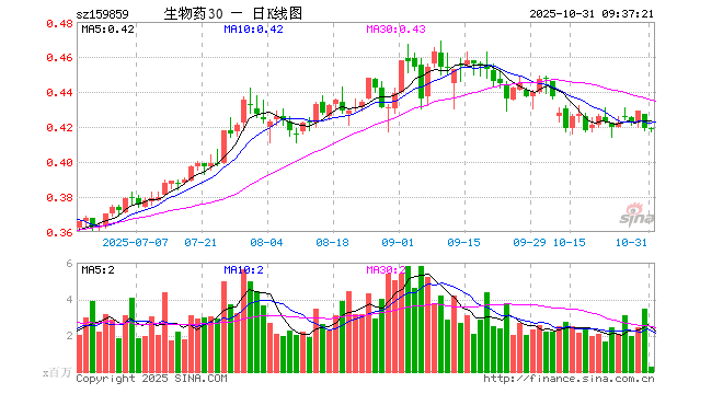 10月31日,生物医药ETF(159859)开盘涨0.00%,报0.419元。生物医药ETF(159859)重仓股方面,药明康德开盘涨0.36%,长春高新跌4.51%,复星医药跌0.18%,康龙化成涨0.24%,上海莱士涨0.00%,泰格医药跌0.12%,百利天恒涨0.15%,甘李药业跌4.31%,爱美客跌0.06%,智飞生物涨3.00%。