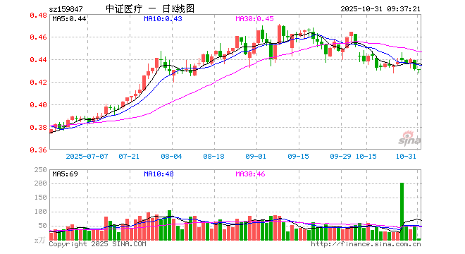 医疗ETF易方达(159847)开盘涨0.00%,重仓股药明康德涨0.36%,迈瑞医疗跌0.55%