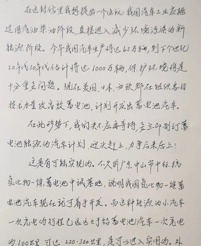 钱学森认为,21世纪,环境保护将是十分重要的问题。1992年,钱学森写信建议发展新能源汽车。