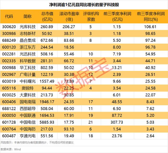 数据宝同时梳理了2025年前三季度净利润逾1亿元,且同比实现稳定增长的量子科技概念股,共计17股。光库科技实现翻倍增长,净利润同比增幅106.61%;志特新材、晶合集成、浙江东方3股紧随其后,净利润同比增长均在95%以上。