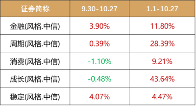 风格层面,10月风格出现切换,消费、成长风格出现下跌,金融、稳定风格表现靠前。全年来看,成长、周期风格显著跑赢稳定风格。