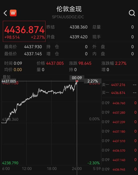 就在刚刚,国际金价达到4436美元/盎司,突破10月20日的高点,再创历史新高。