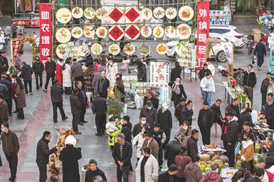 摊主吆喝叫卖,顾客讨价还价,碰到乡亲闲话两句家常……村头巷尾的市集以简单的交易方式营造“在场感”,将消费转化为一次社交参与。现阶段,许多大集“赶”出了多种花样,除了售卖物品,还开展惠民演出、展销非遗工艺品等,丰富了游客们的体验,使得乡村大集成为一个融消费、娱乐、社交、文化体验于一体的复合型空间。
