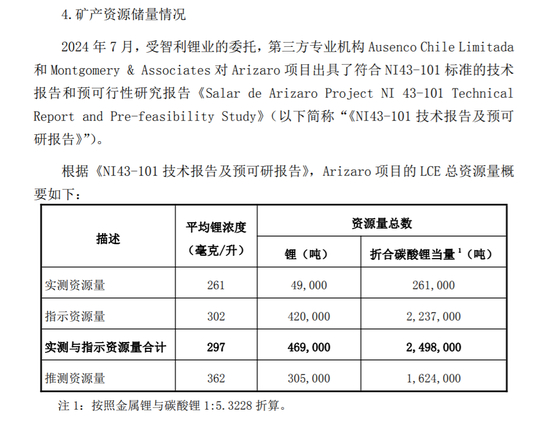 根据第三方预可研报告,Arizaro项目推测资源量的平均锂浓度362毫克/升,总资源量折合碳酸锂当量为162.4万吨。项目建设投产后,主要产品为含锂盐湖卤水生产的碳酸锂。