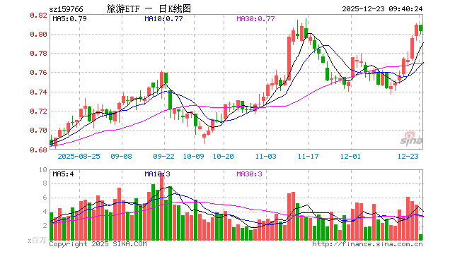 旅游ETF(159766)开盘涨0.00%,重仓股中国中免涨1.73%,上海机场涨0.00%