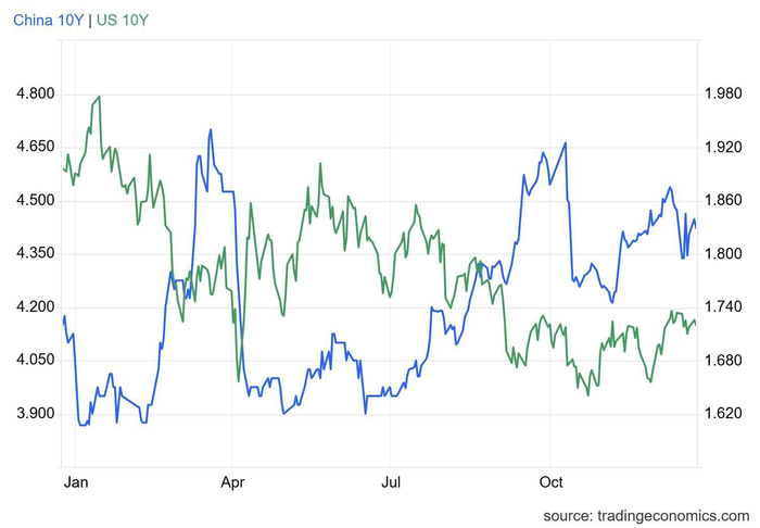 截至12月22日,中国二年期国债收益率为1.37%,中国十年期国债收益率为1.84%。