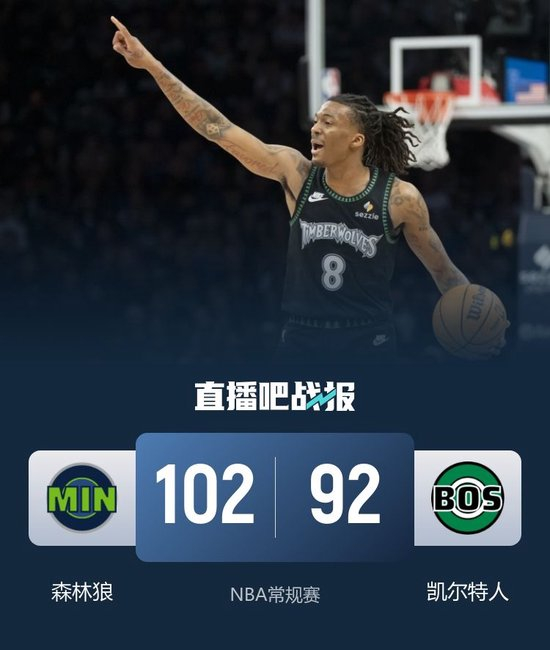 直播吧3月23日讯 NBA常规赛今日继续开打,凯尔特人今日坐镇主场迎战森林狼,本场比赛森林狼核心爱德华兹因伤缺席比赛。