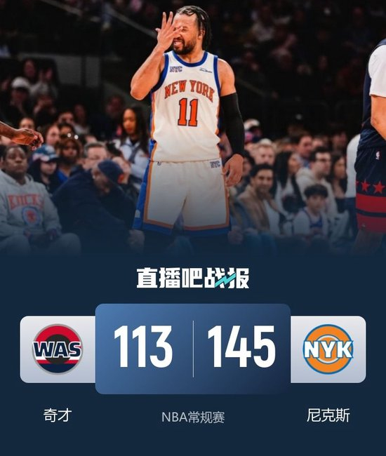 尼克斯送奇才16连败 唐斯26+16 布伦森23分 哈迪25分