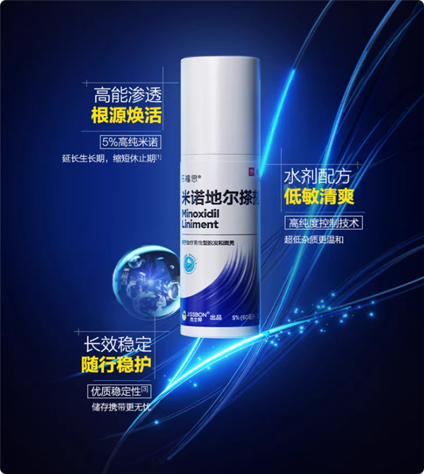 升级配方,99.8%精纯米诺地尔,高纯度焕活毛囊 持续延长毛发生长周期。